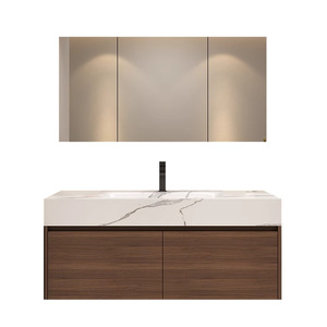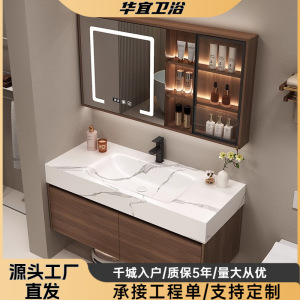 高端岩板热弯一体盆浴室柜组合卫生间胡桃木洗漱台洗手池洗脸盆柜