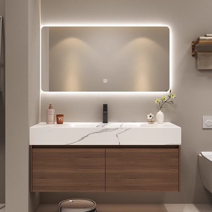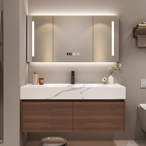 100cm岩板热弯一体盆+玻璃智能镜柜