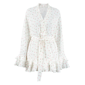 秋の新ピュアコットンプリント長袖ナイトガウンショーツパジャマ 2 点セット 2025 ヨーロッパとアメリカのフリルホーム服女性のための