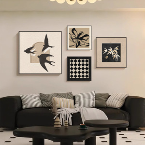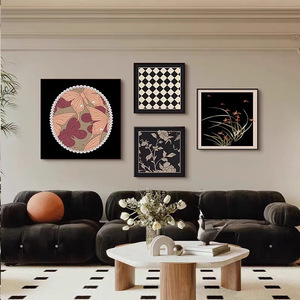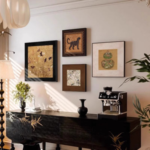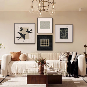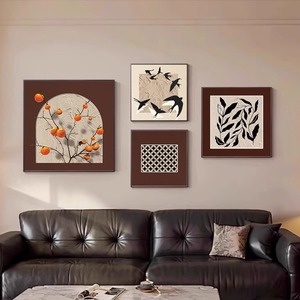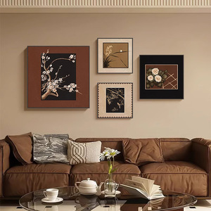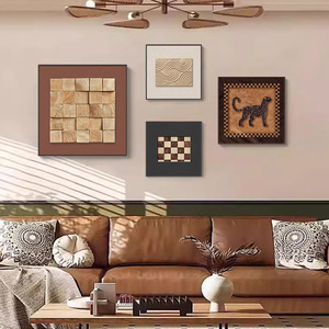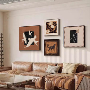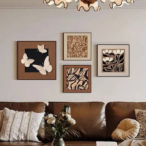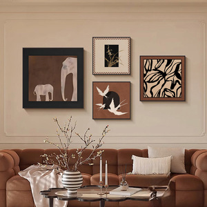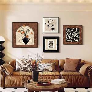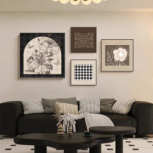 中古风高级感客厅装饰画沙发背景墙抽象艺术壁画法式复古组合挂画