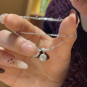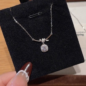 S925 スターリングシルバー小さな角砂糖ロープネックレス女性のための韓国のライト高級社交家スタイル絶妙なハイエンドモアッサナイトダイヤモンド鎖骨チェーン