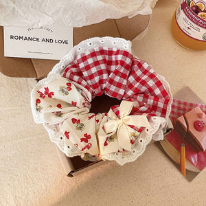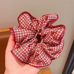 赤いチェック柄のヘアゴム