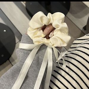 リボンオフホワイトのヘアゴム