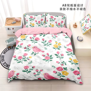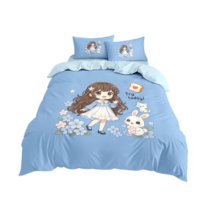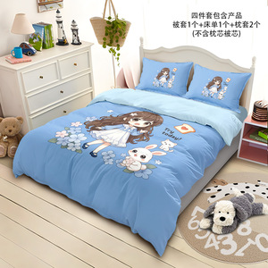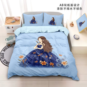 涤纶四件套卡通小女孩3d印花床单被套儿童学生亲肤面料床笠四件套
