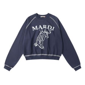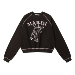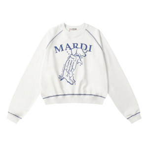 【韓国版】マルディ デイジー スウェットシャツ ゆったり ショート ラグランスリーブ トップステッチ ダックスフント ゴールド ハイ シルバー