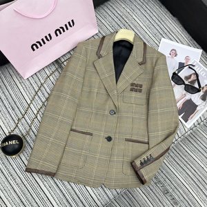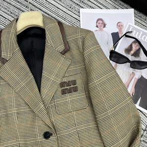 mm24秋冬新款系列款千鸟格拼皮包边翻领西装外套+小A半裙