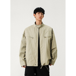 クリーンフィット スタンドカラー ハリントンジャケット メンズ アメリカンレトロ 春秋 ヘビーウェイト ブランド ハイストリート ワークウェア ジップアップジャケット