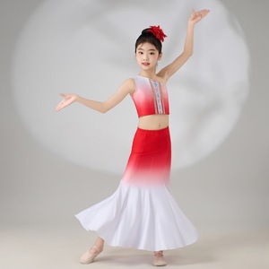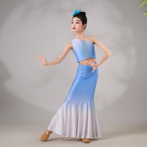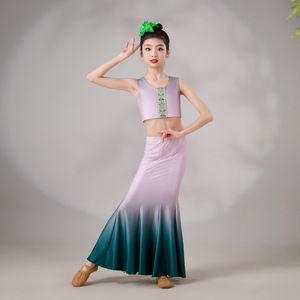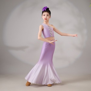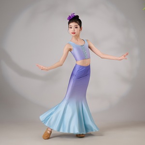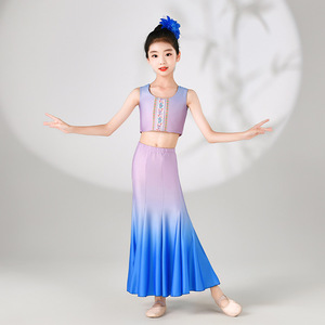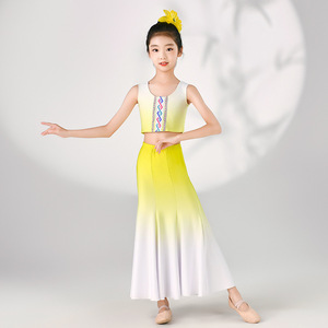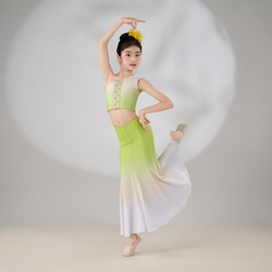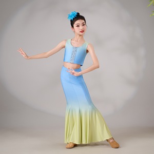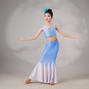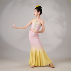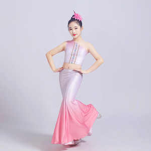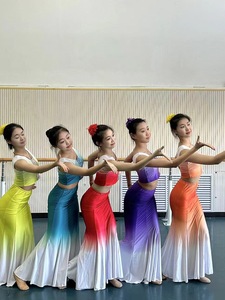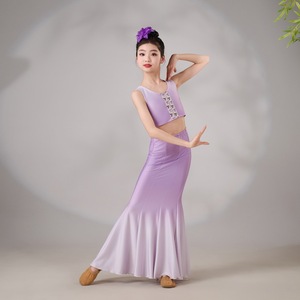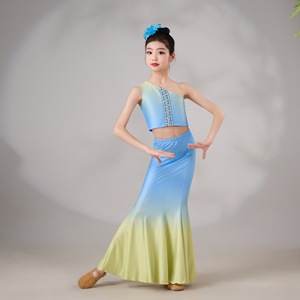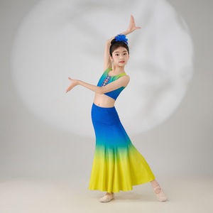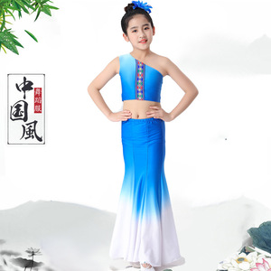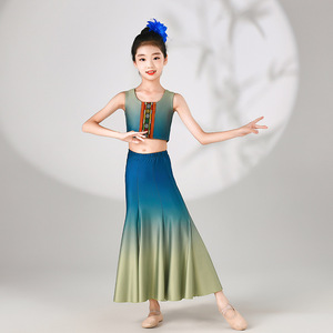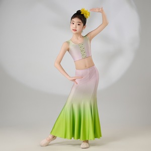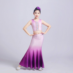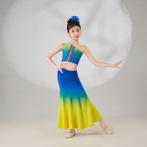 子供用ダイダンス衣装、女の子用フィッシュテールスカート、ヒップカバーハーフスカート、孔雀舞衣装、練習用スカート