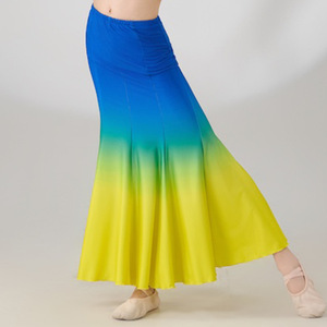 青と黄色のグラデーション360度スカート+ワンショルダートップ