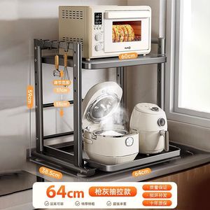 高見えキッチン収納ラック 引き出し式カウンタートップ 電子レンジスタンド 炊飯器 エアフライヤー収納ラック