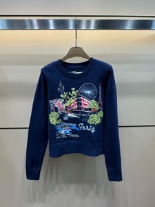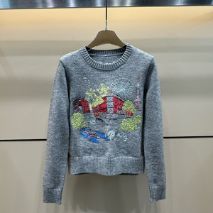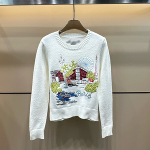 25早秋新款系列款时尚重工万针景色刺绣长袖套头毛衣 4色