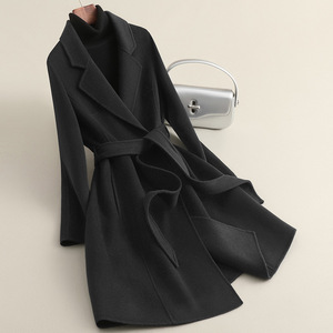 2025年秋款高端双面羊毛大衣女秋季长款赫本风系带高级感毛呢外套