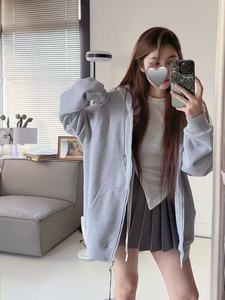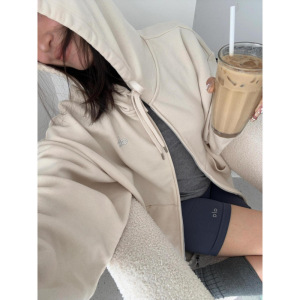 ALO宽松外套女2025新款春秋灰色连帽开衫卫衣休闲百搭运动瑜伽服
