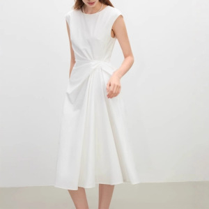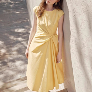 范思篮恩同款 黄色无袖扭结收腰连衣裙女夏季2025新款小个子裙子