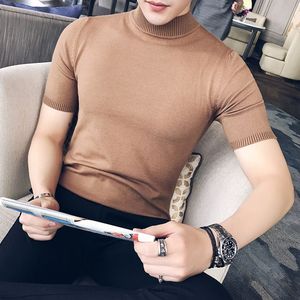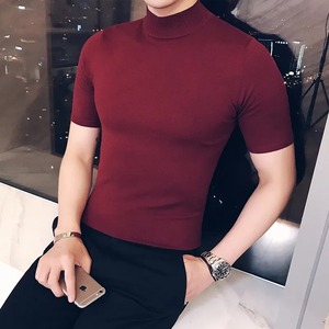 メーカー卸売メンズセーターハーフタートルネック半袖ミッドカラースリムニットソリッドカラー春秋冬プルオーバーボトリングシャツ