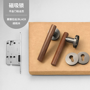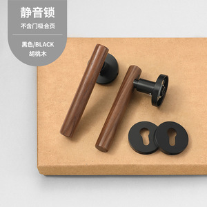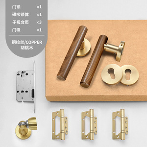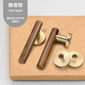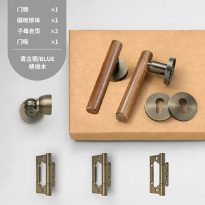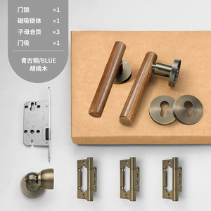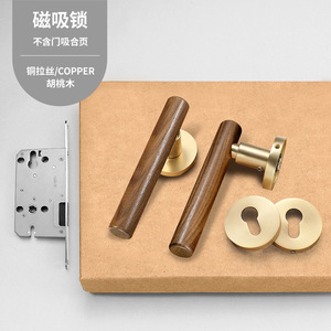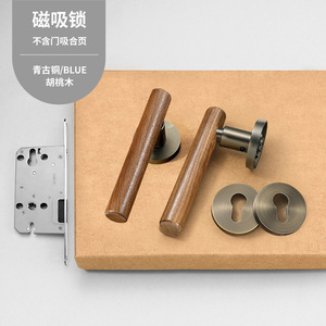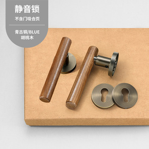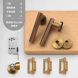 新中式室内房门锁黄古铜复古卧室门锁磁吸静音分体房间门把手锁具