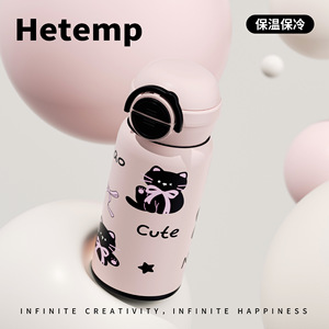 卡通粉色小猫水杯高颜值304不锈钢保温杯户外便携车载弹跳杯批发