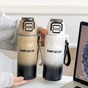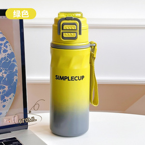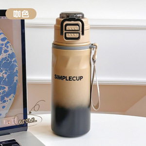 渐变弹跳双饮保温杯670ml户外运动便携吸管杯带提绳高颜值双饮杯