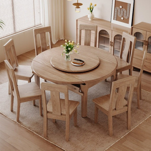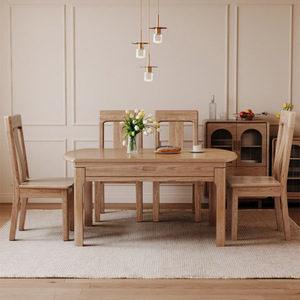アッシュ無垢材のダイニングテーブルと椅子の組み合わせ、モダンでシンプルな小さなアパートの正方形と円形の兼用ダイニングテーブル、わびさびスタイル