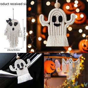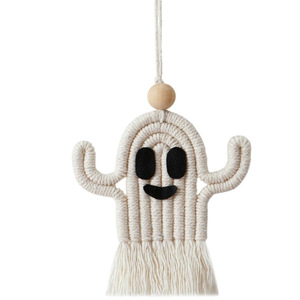 跨境欧美纯手工编织万圣节装饰挂饰可爱搞怪幽灵挂绳流苏节日挂件