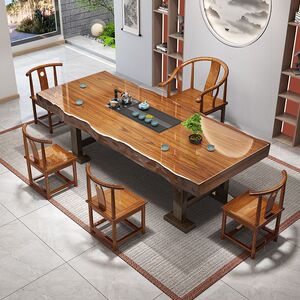 整板大板原木实木茶桌椅组合整切茶几客厅家用办公室泡茶一体茶台