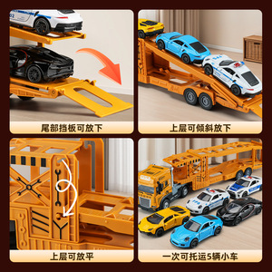 惯性合金双层运输车带运输架子玩具货车声光回力车模男孩玩具批发