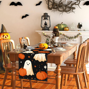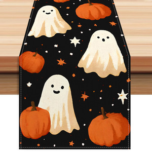 跨境万圣节幽灵桌旗新款亚马逊印花桌布节日派对装饰客厅茶几布
