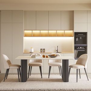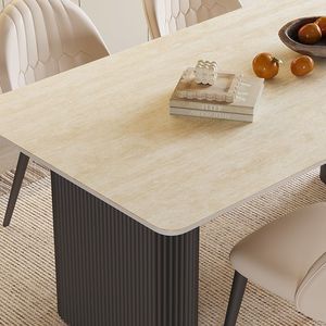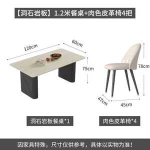 中古风黄洞石岩板餐桌小户型家用客厅现代简约轻奢设计餐桌椅组合