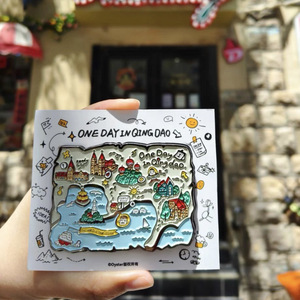 Xiaohongshu 青島の磁気冷蔵庫ステッカー、見栄えの良いクリエイティブなお土産、金属製の磁気装飾
