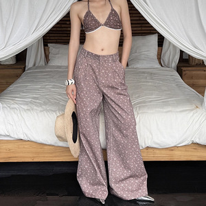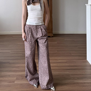 CHENSHO 取り外し可能な立体フラワーカジュアルストレートパンツプリントブラジャーカジュアルパンツ