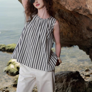 【假日小衫】2025夏季新款条纹背心无袖上衣衬衣女