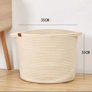 綿ロープ編みバスケット植木鉢バスケットわら編みラウンド収納バスケット家の装飾汚れた衣類バスケット汚れた衣類バスケット収納バスケット