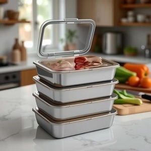 ACA201保鲜盘带盖不锈钢方盘备菜平底托盘摆摊保鲜生腌野餐食物盒