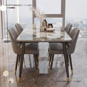 餐桌岩板轻奢现代简约家用小户型简易客厅饭桌子长方形餐桌椅组合