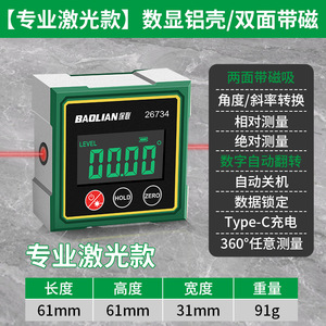 保联倾角仪水平尺平衡测量数显水平仪磁吸激光坡度斜率角度尺工具