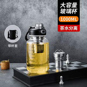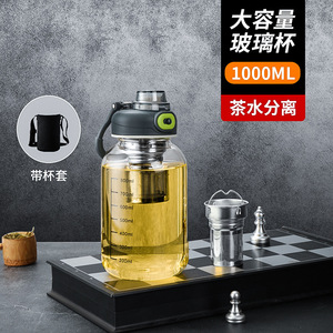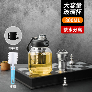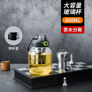 容量ガラス茶水分離カップ男性と女性の旅行ティーカップ高温耐性スケール付き単層厚みのあるティーカップドリンクウェア
