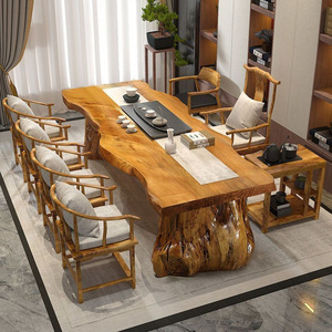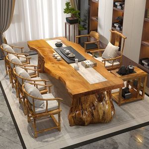 無垢材のティーテーブルと椅子の組み合わせティーテーブル新しい中国風の大型ボードティーテーブルログオフィスコーヒーテーブルシンプルでモダンなティーテーブル