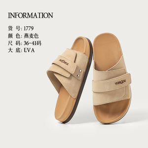 远港2025新款可调节拖鞋女夏季防滑外穿厚底沙滩皮革凉拖办公室男