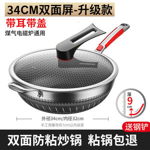 无涂层不粘锅家用炒锅316不锈钢蜂窝不粘炒菜锅电磁炉燃气灶通用