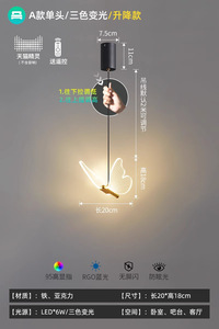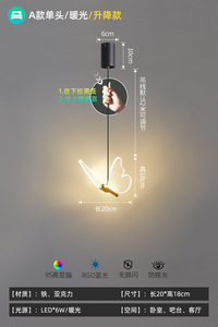 バタフライベッドサイドシャンデリア寝室クリエイティブライト高級北欧ハイエンドペンダントライトパーソナライズされた玄関子供部屋小さなシャンデリア