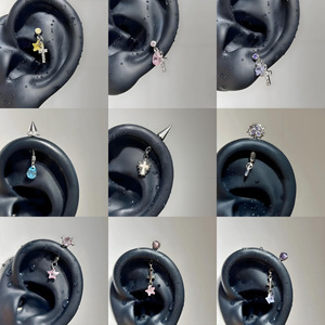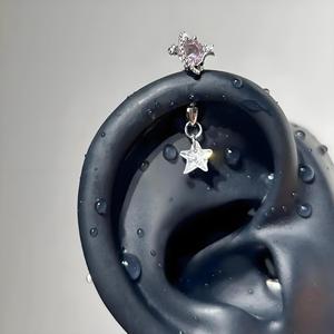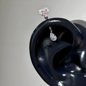 立体恶魔钉锆石镶钻耳骨钉甜酷风猫耳水滴吊坠ins潮爆款耳饰
