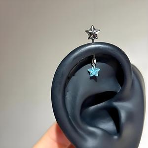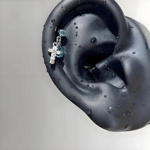 蓝色十字架耳轮钉D1519