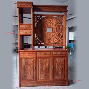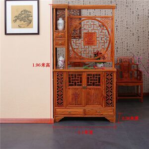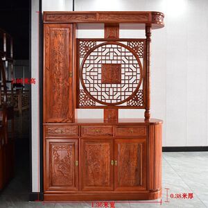 新中式仿古实木家用入户门龙柱玄关柜双面屏风隔断客厅遮挡福字柜