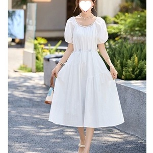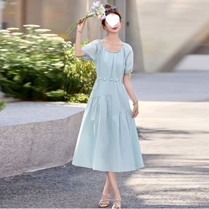 法式泡泡袖设计感收腰连衣裙女欧货2025夏时尚洋气减龄休闲中长裙