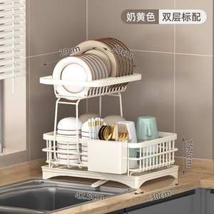 クリーミーイエロー二層【包丁ホルダー+まな板ホルダー+フック付き】