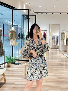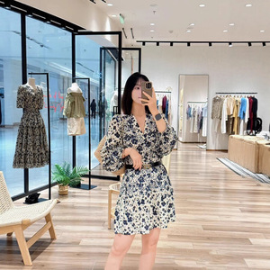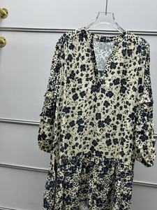 25年新款碎花裙富丽邹波西米亚风v领木耳边灯笼袖连衣裙女氛围感