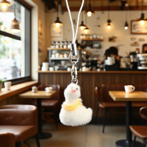樹脂植毛立体漫画かわいいアヒル小さな白いアヒルキーホルダー車のバッグ携帯電話チェーンペンダント卸売