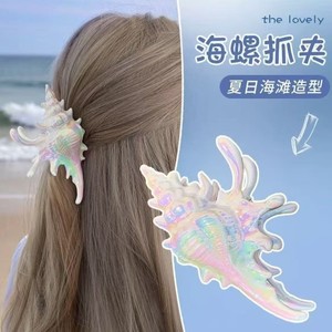クリエイティブなデザインの法螺貝ヘアピン、サマービーチスタイルシャーククリップ、オーシャンヘアアクセサリー、ヘッドドレス、トラベルヘアグリップ