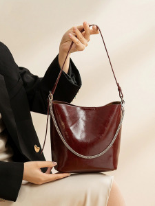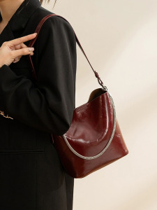 2025 オイルワックスハイエンドレッドバッグブライダルショルダークロスボディスモールバッグチェーン脇の下レディースバッグ大容量