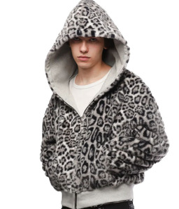 欧米風秋冬新作フード付きスウェットシャツ、リバーシブルレトロヒョウ柄ジップアップパーカー、ゆったり個性派トップス